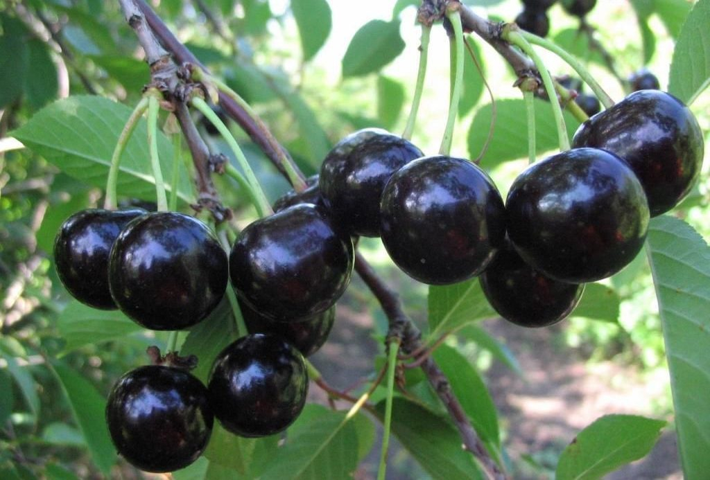 Когда вишни полностью вызревают, они окрашиваются в почти чёрный оттенок.