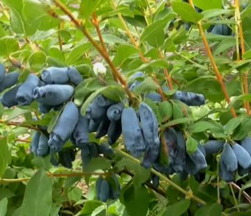 Плоды имеют вытянутую форму – темно-пурпурные или сине-черные с восковым налётом на поверхности, весом до 2 г.